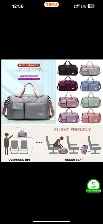 دارای محفظه ی جداگانه برای کفش(شوزبگ)