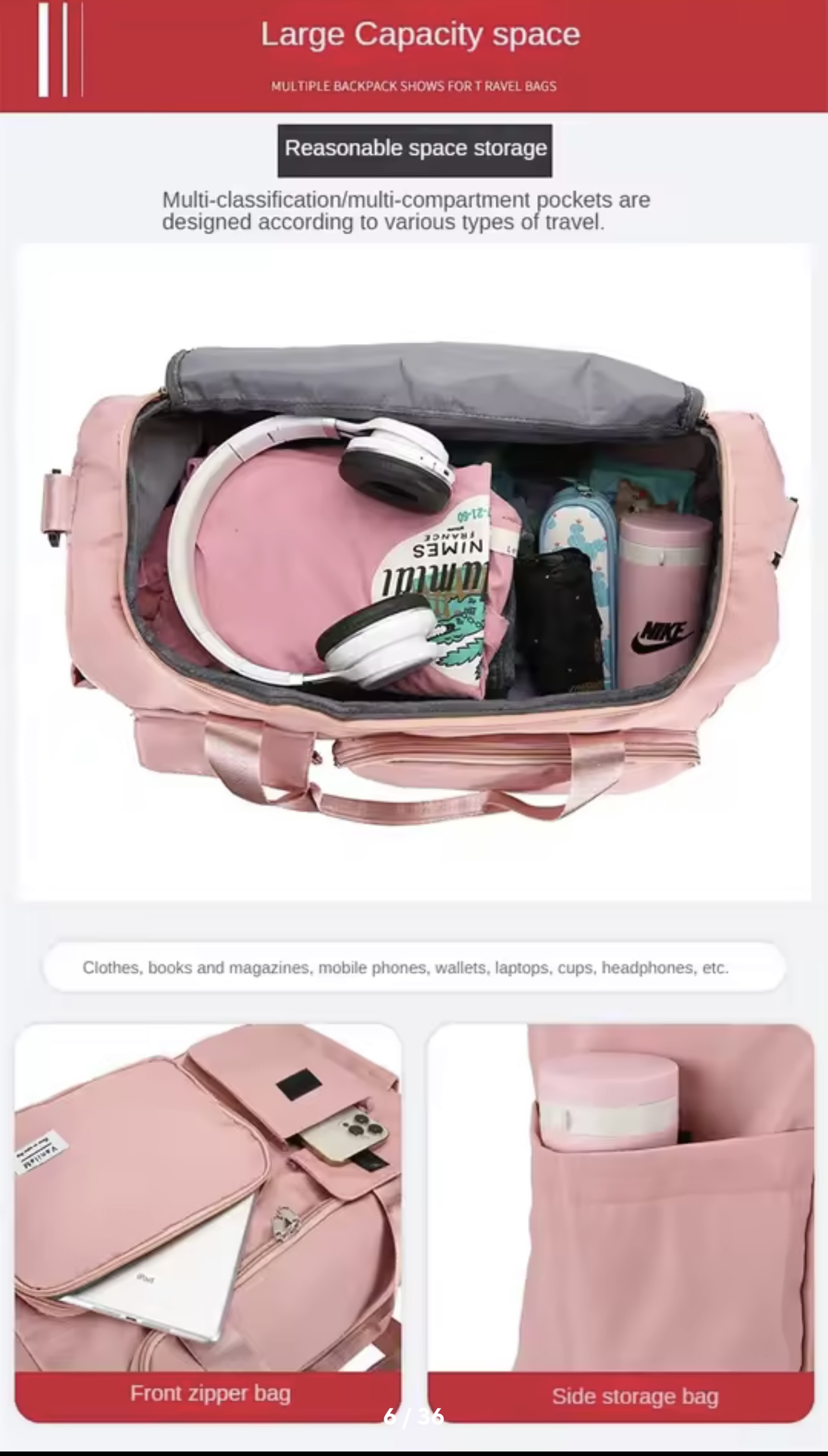 کیف ورزشی زنانه چند منظوره مناسب باشگاه و مسافرت و ساک نوزاد دارای جای لباس خیس و کتونی