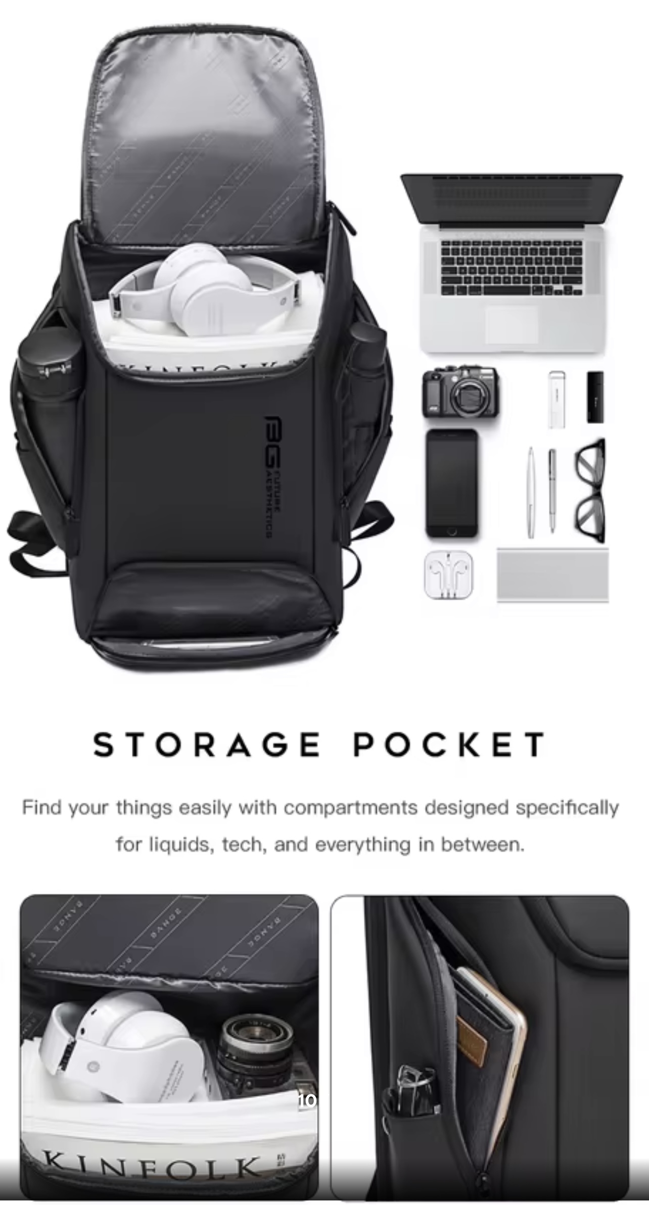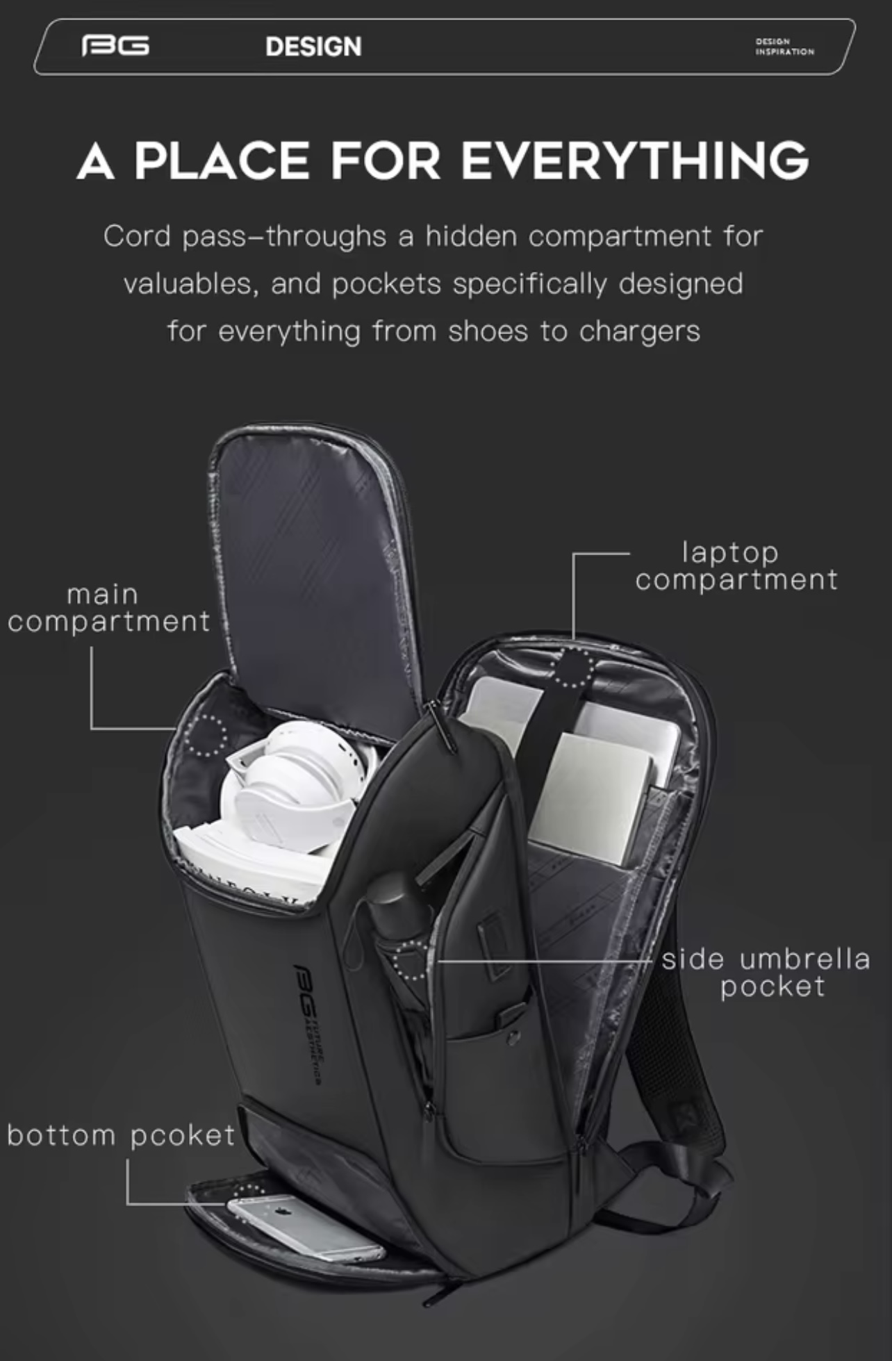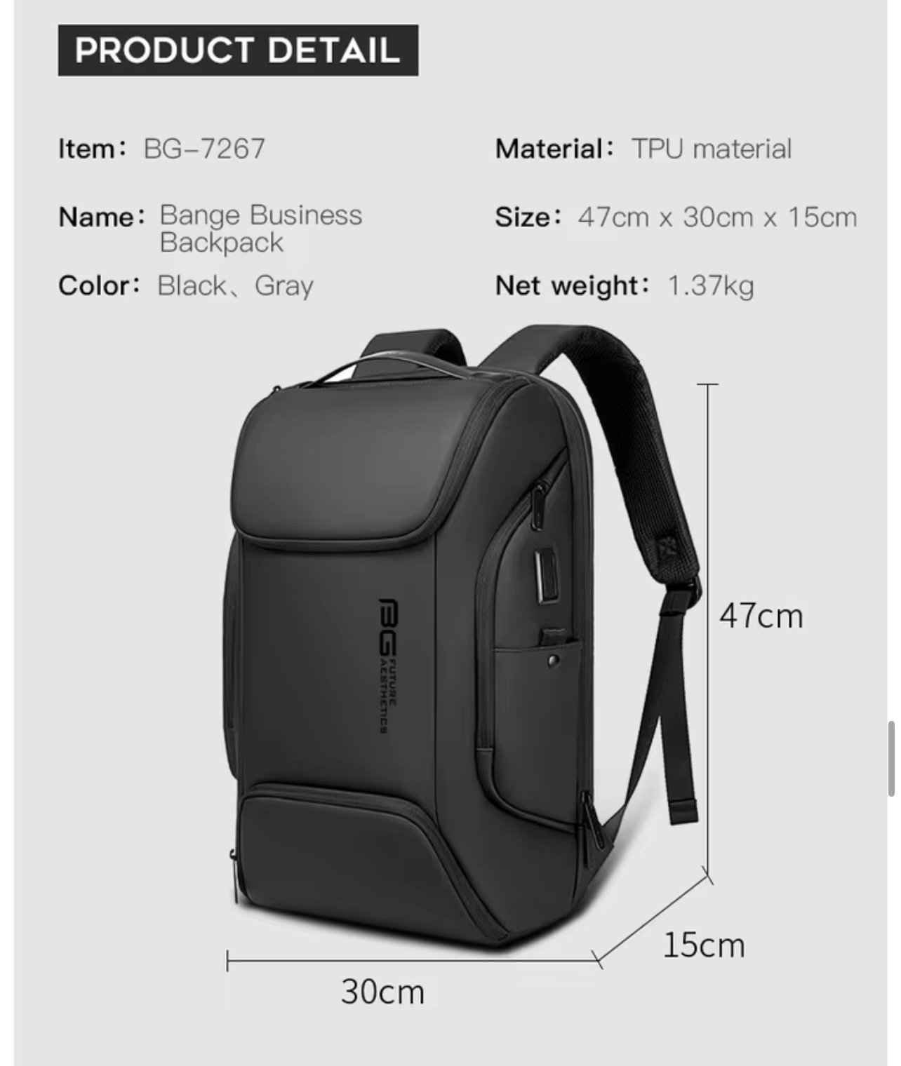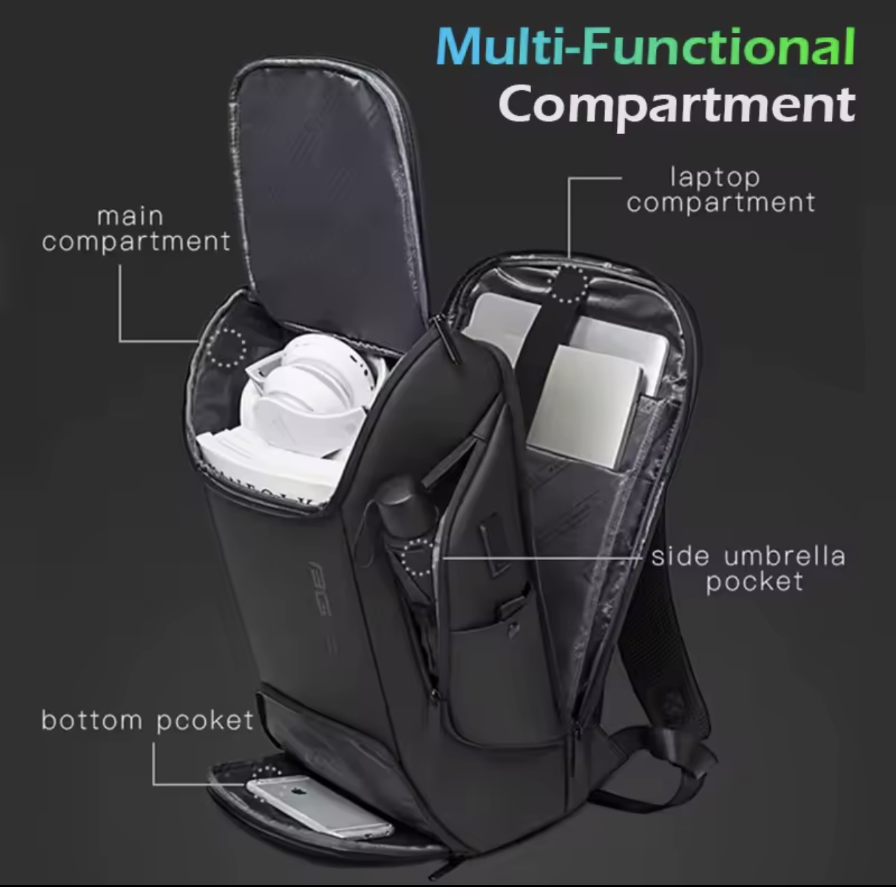 کوله‌پشتی ضدآب هوشمند برند BANGE | مناسب لپ‌تاپ و سفر و باشگاه و طبیعت گردی